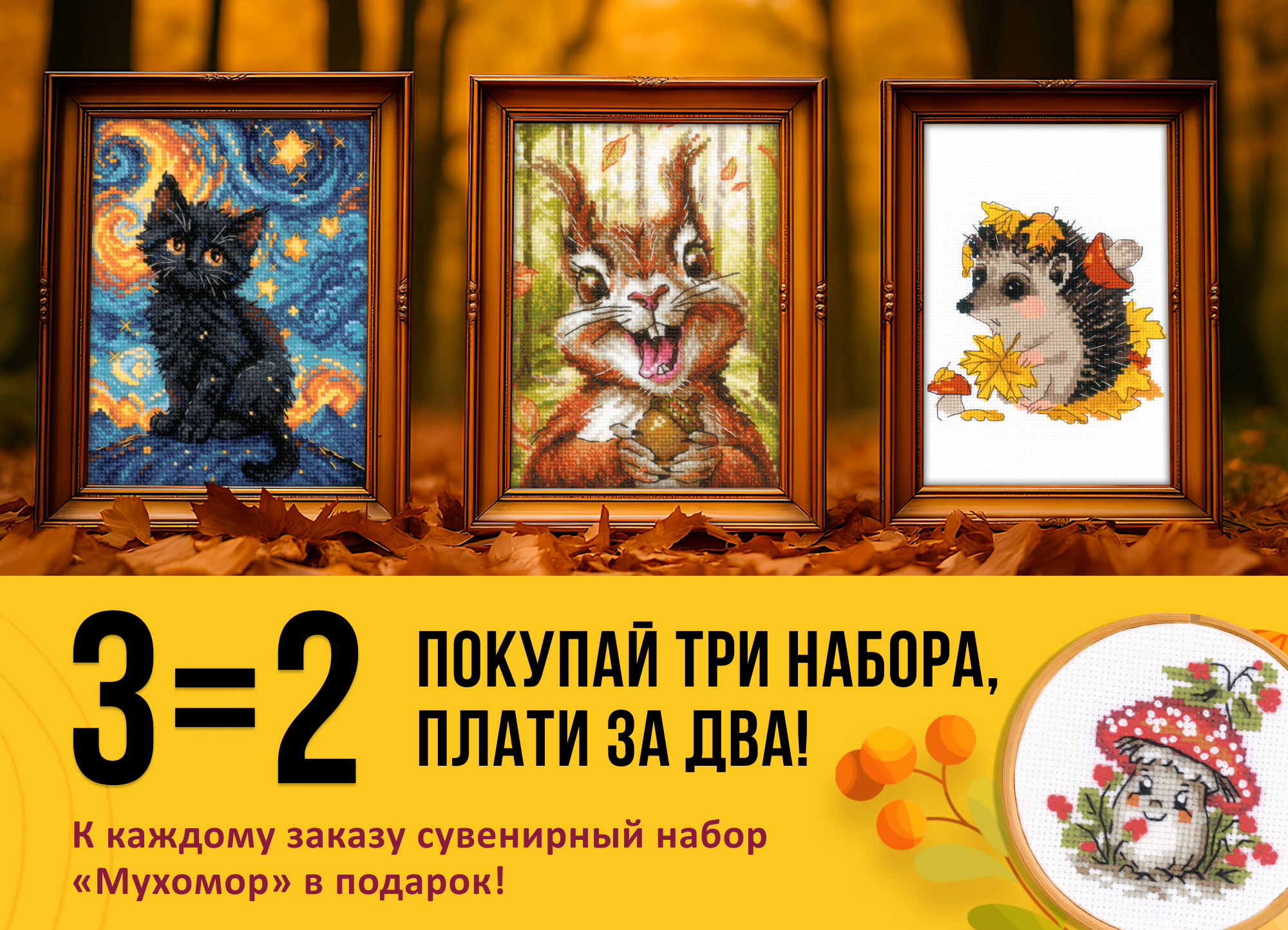 С 17 по 31 октября при покупке трёх наборов, вы заплатите только за два. И к каждой покупке мы добавим сувенирный набор и новый каталог!