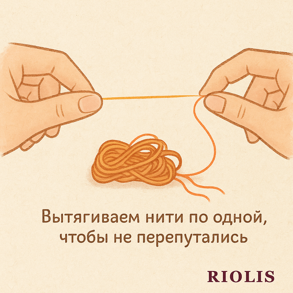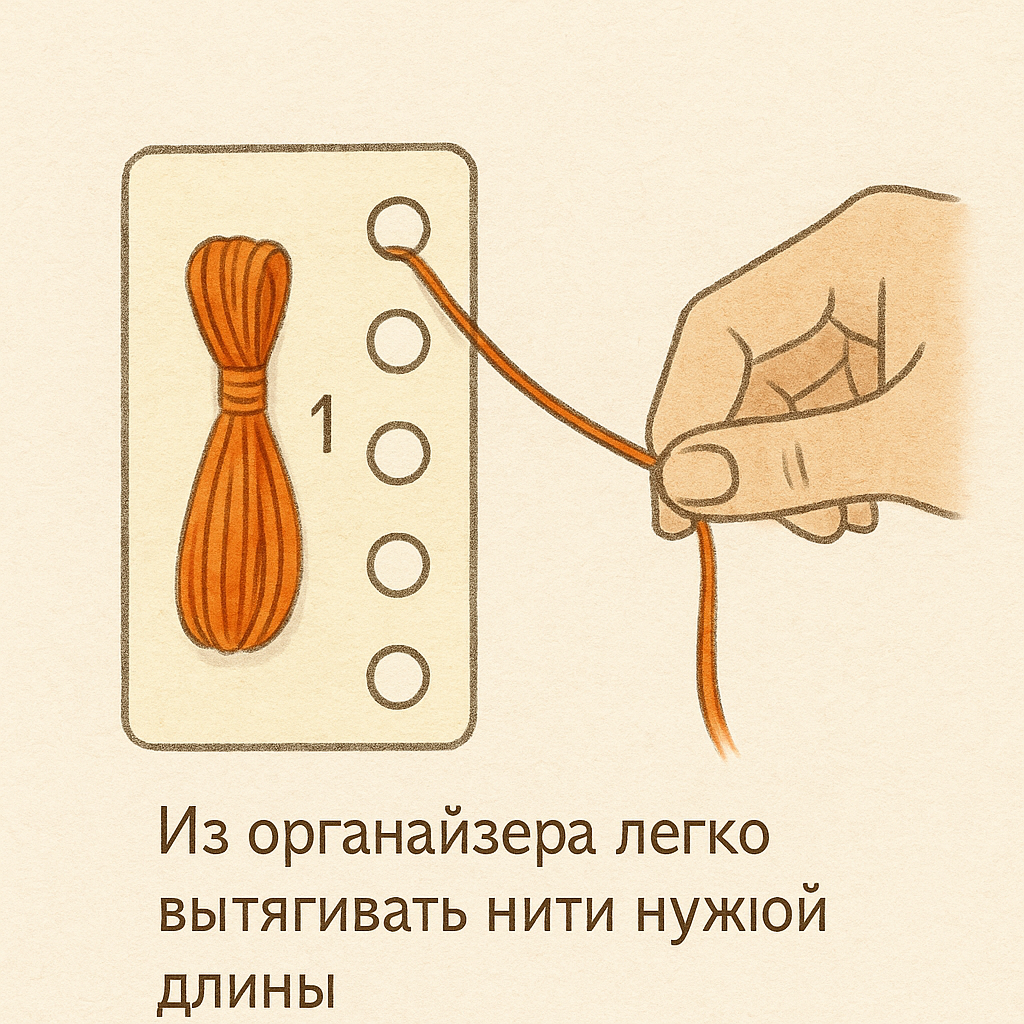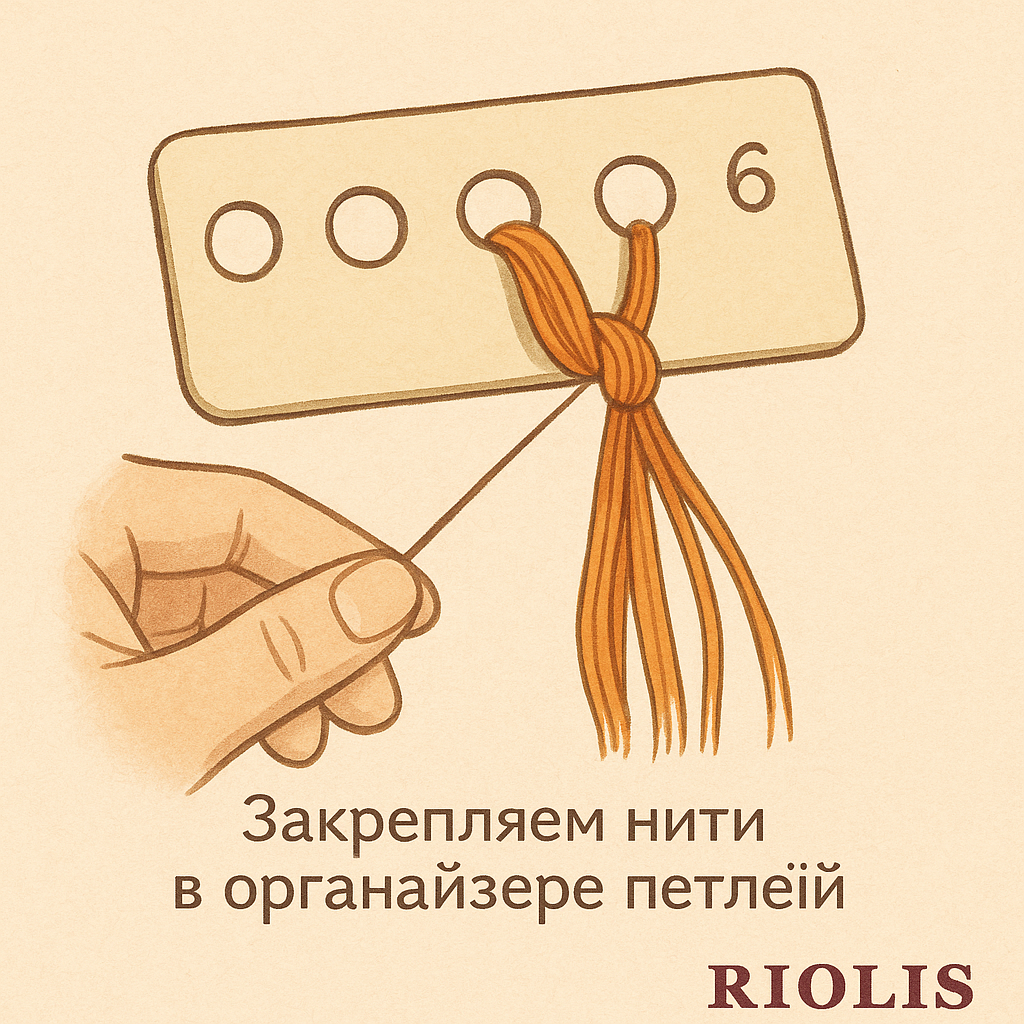 - И наконец, во время работы важно не запутать и не потерять отрезки, не перепутать оттенки. Мы предлагаем вам один из способов организации нитей исключительно с помощью входящих в наборы для вышивания крестом РИОЛИС составляющих.