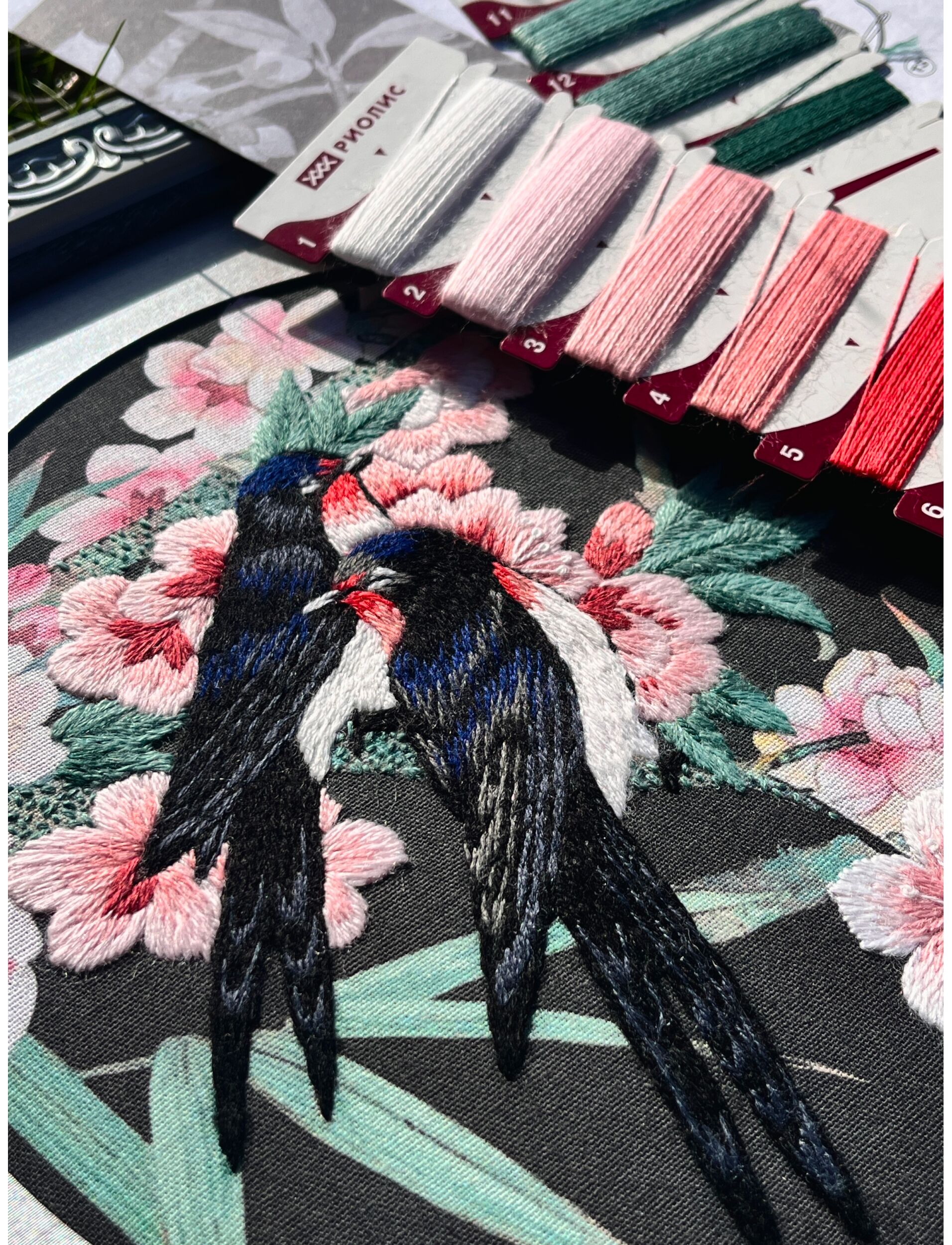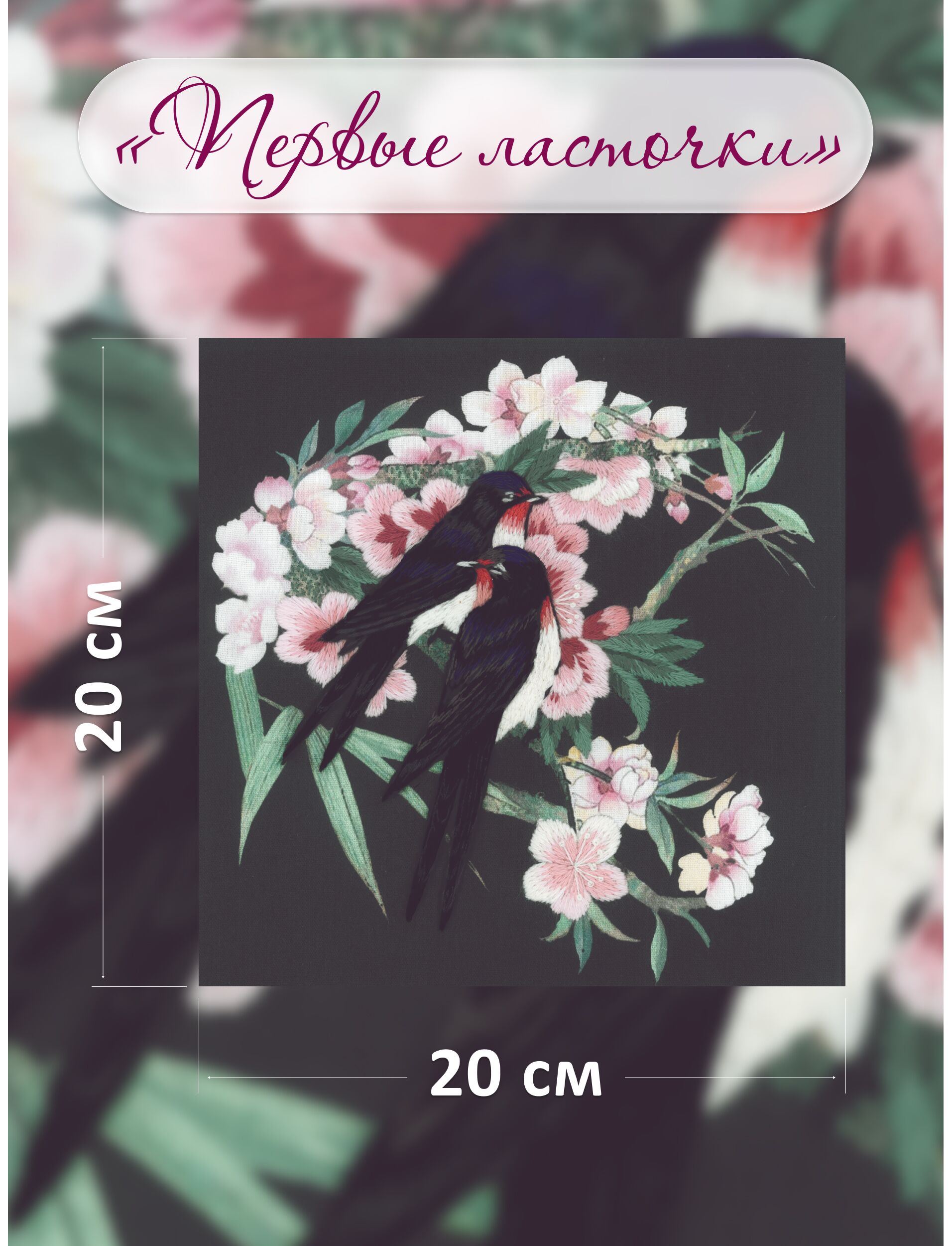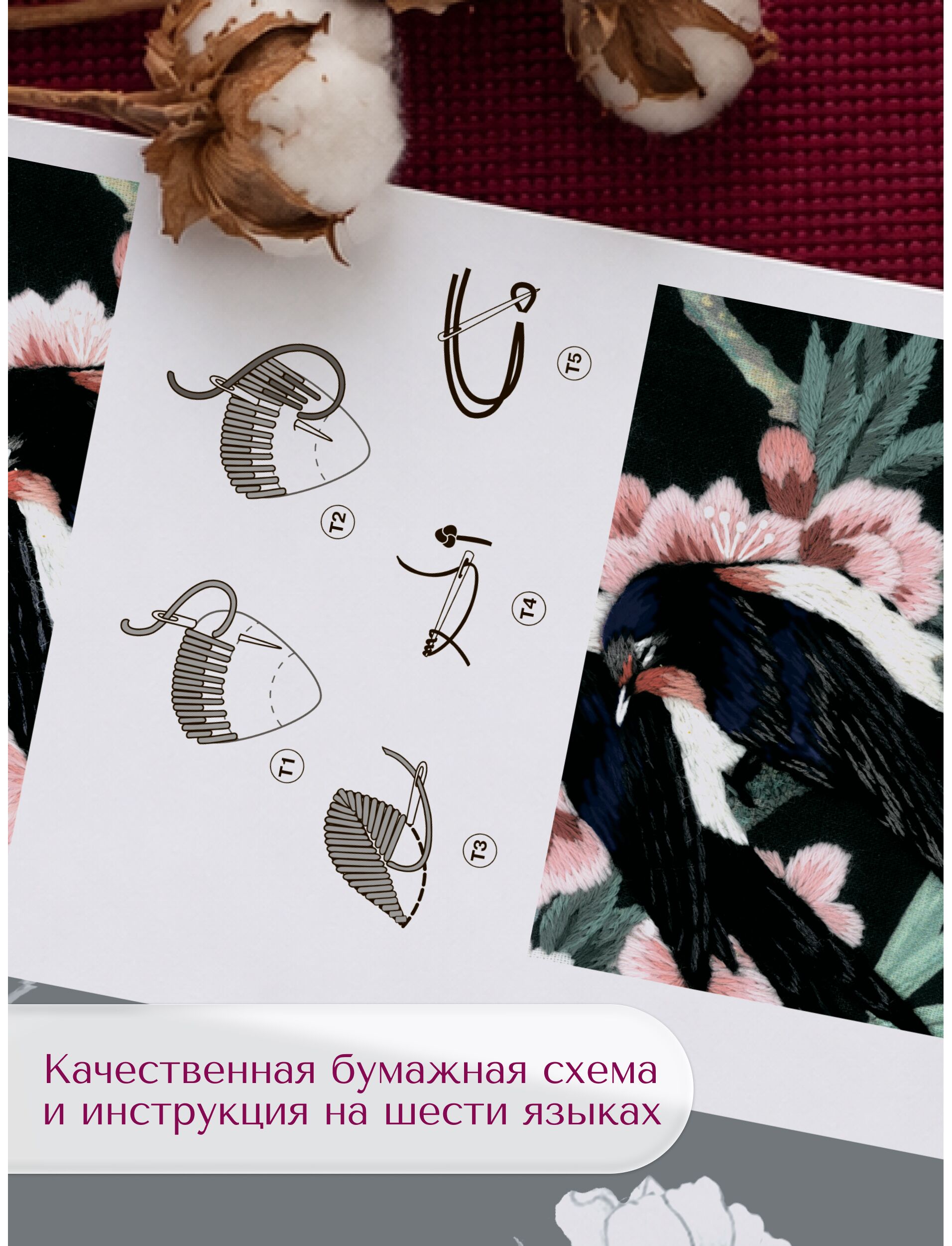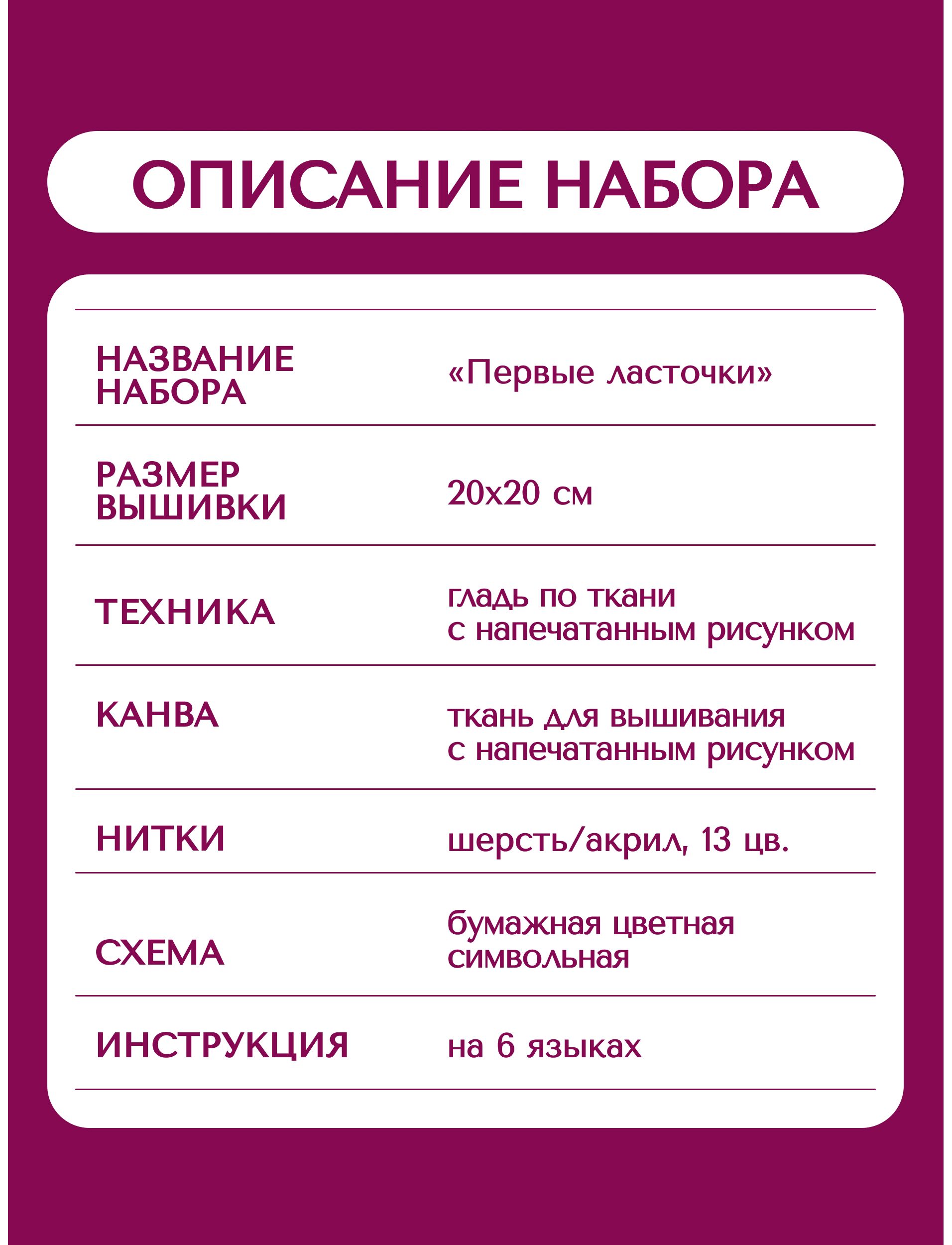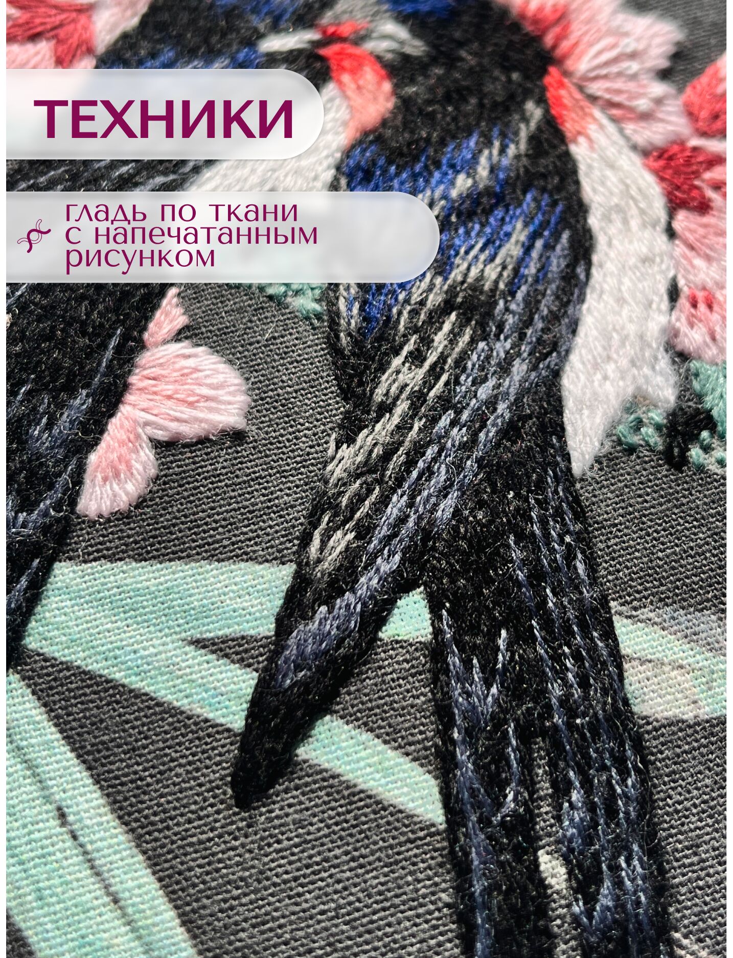 В наборе используются техники: гладь по ткани с напечатанным фоном.