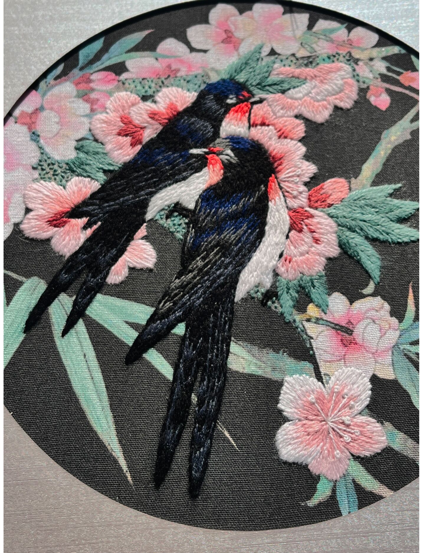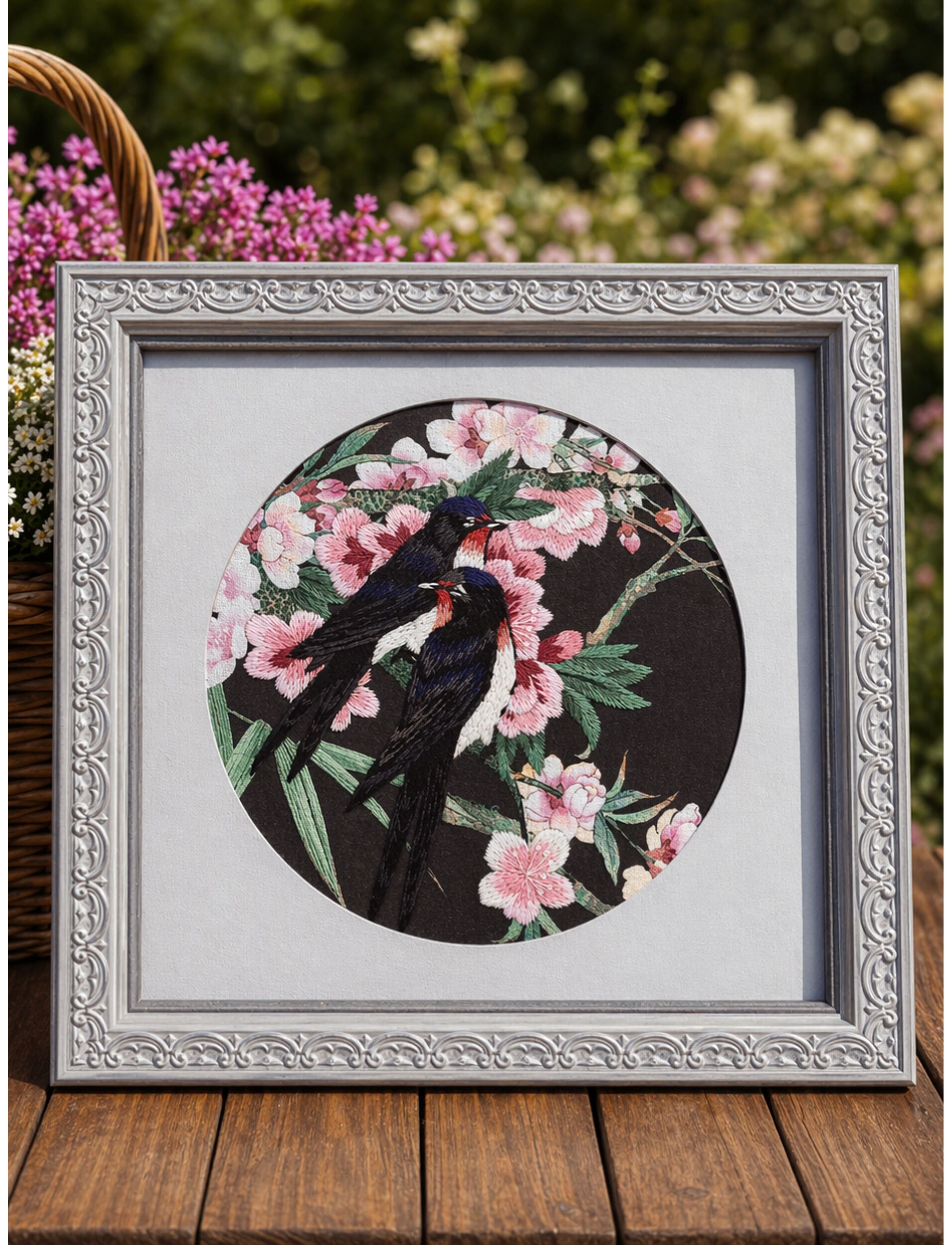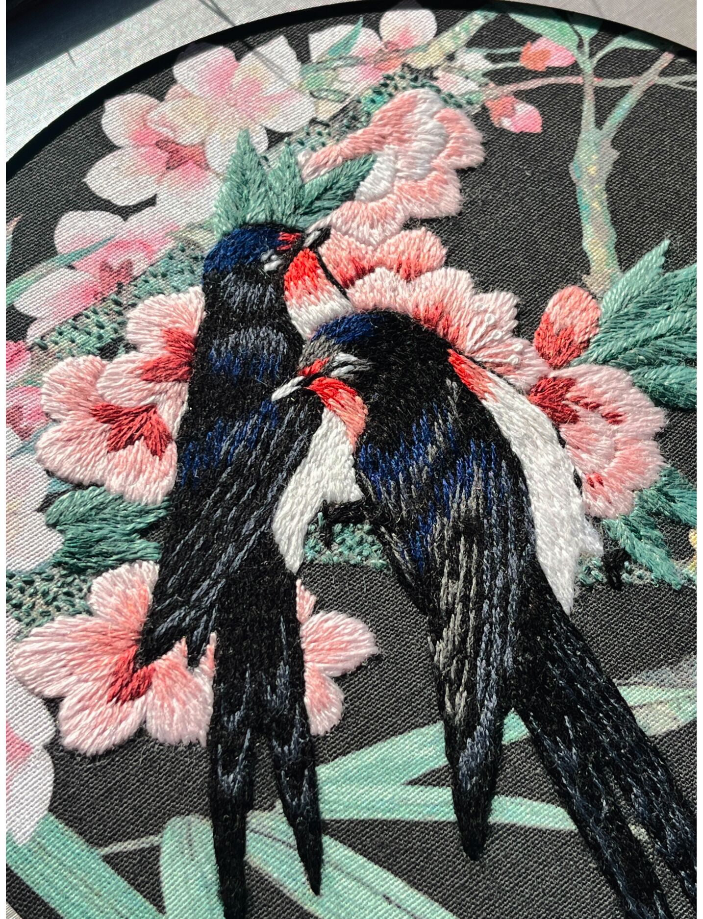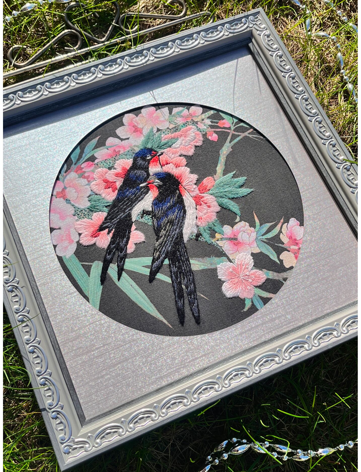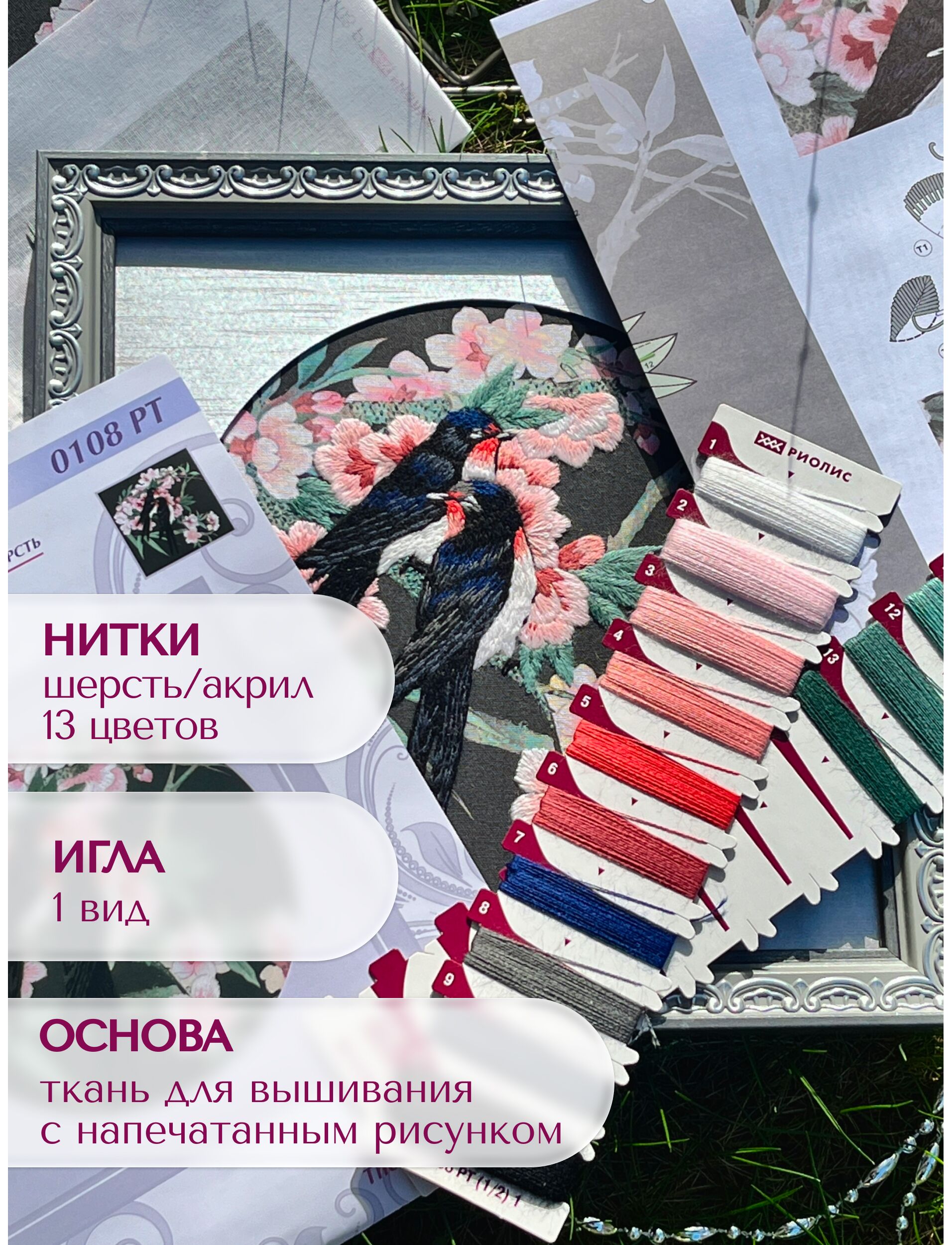 В наборе используются техники: гладь по ткани с напечатанным фоном.