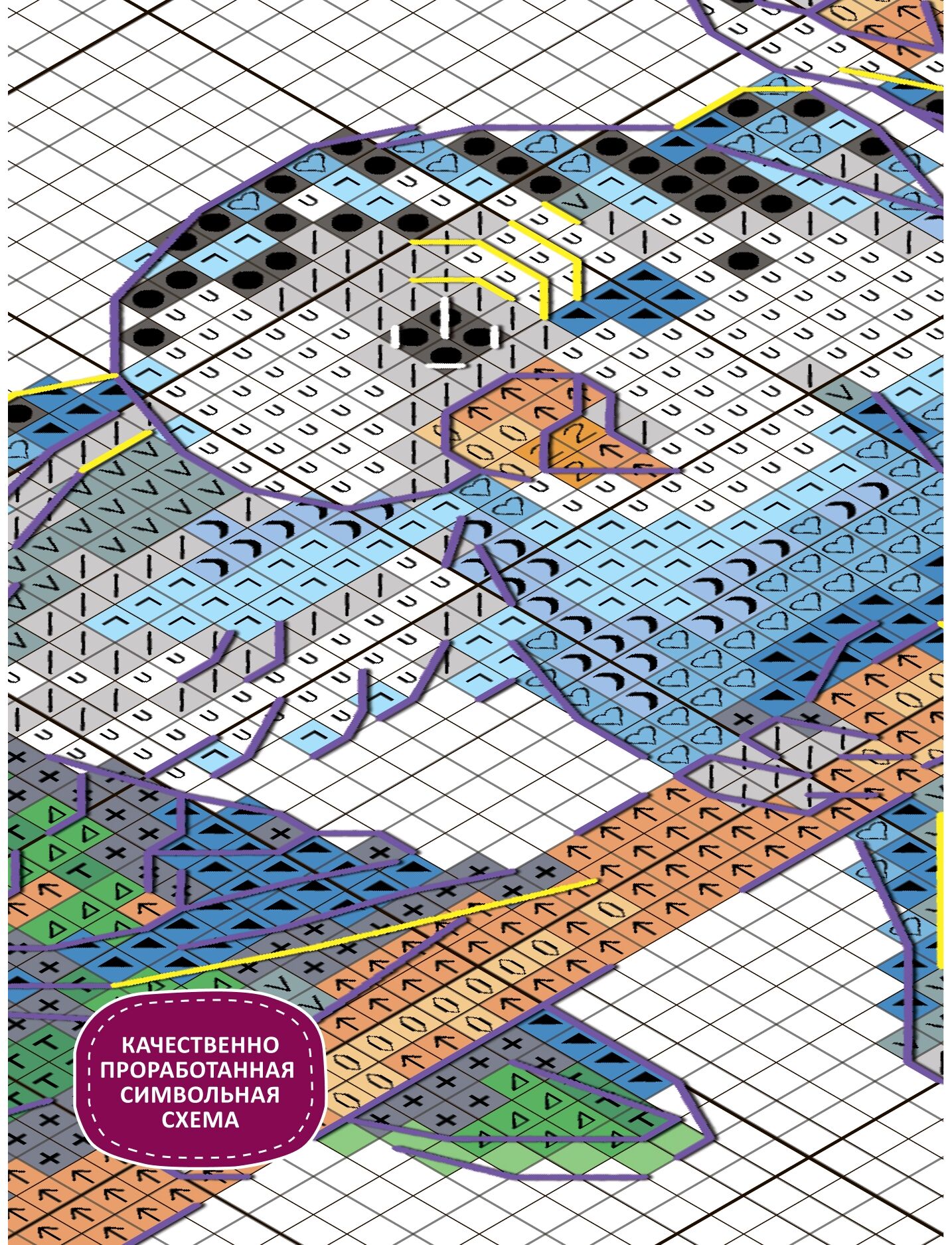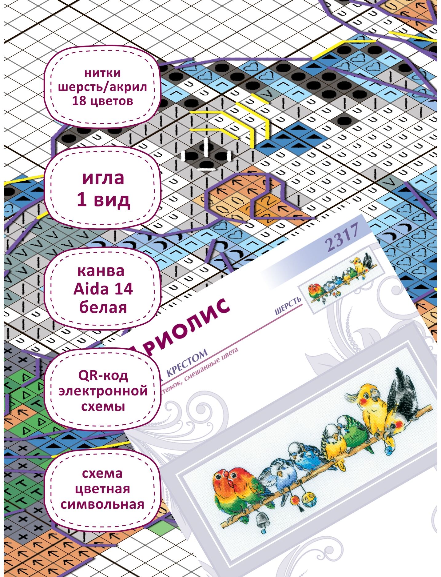 В наборе используются техники: полукрест, стежок, смешанные цвета.