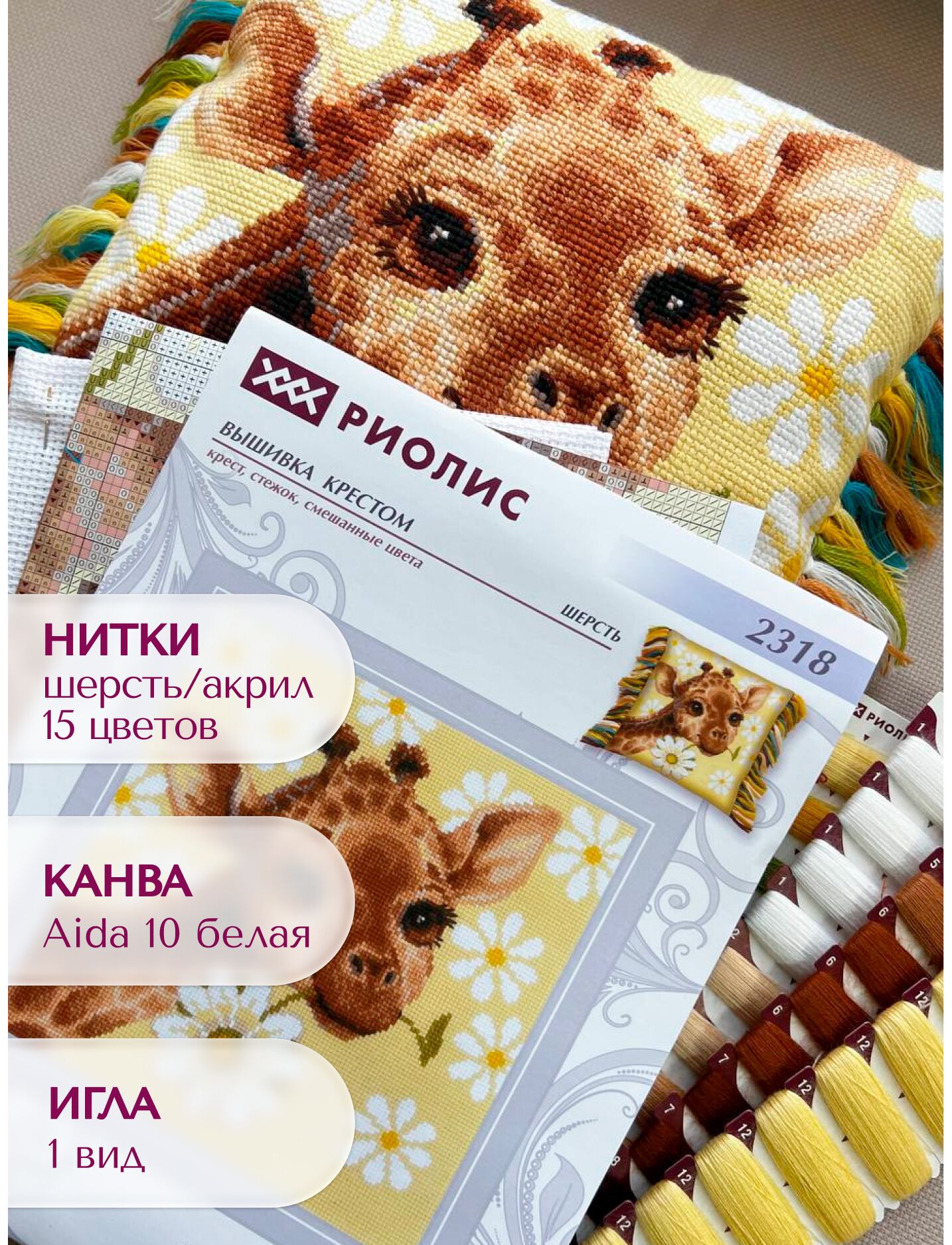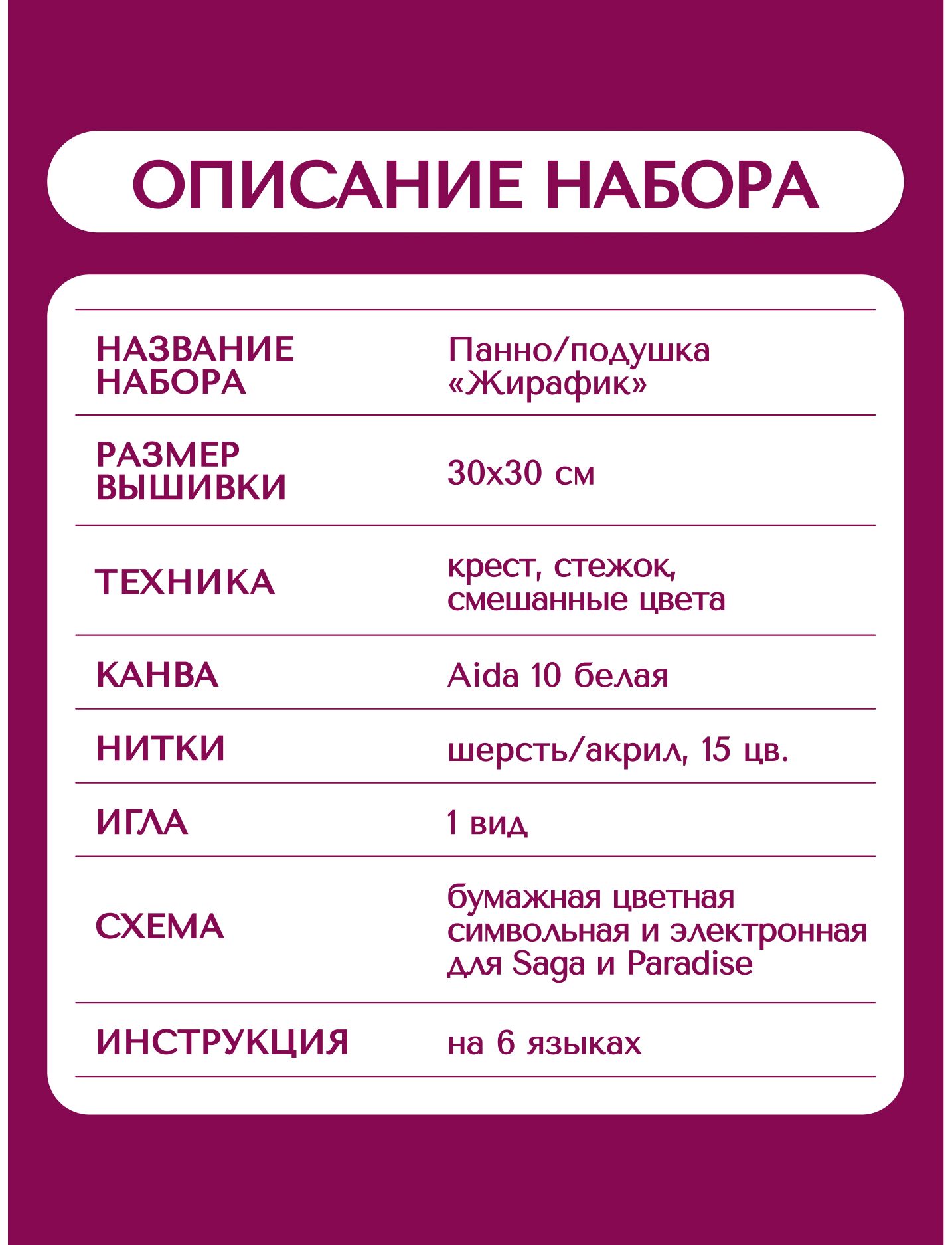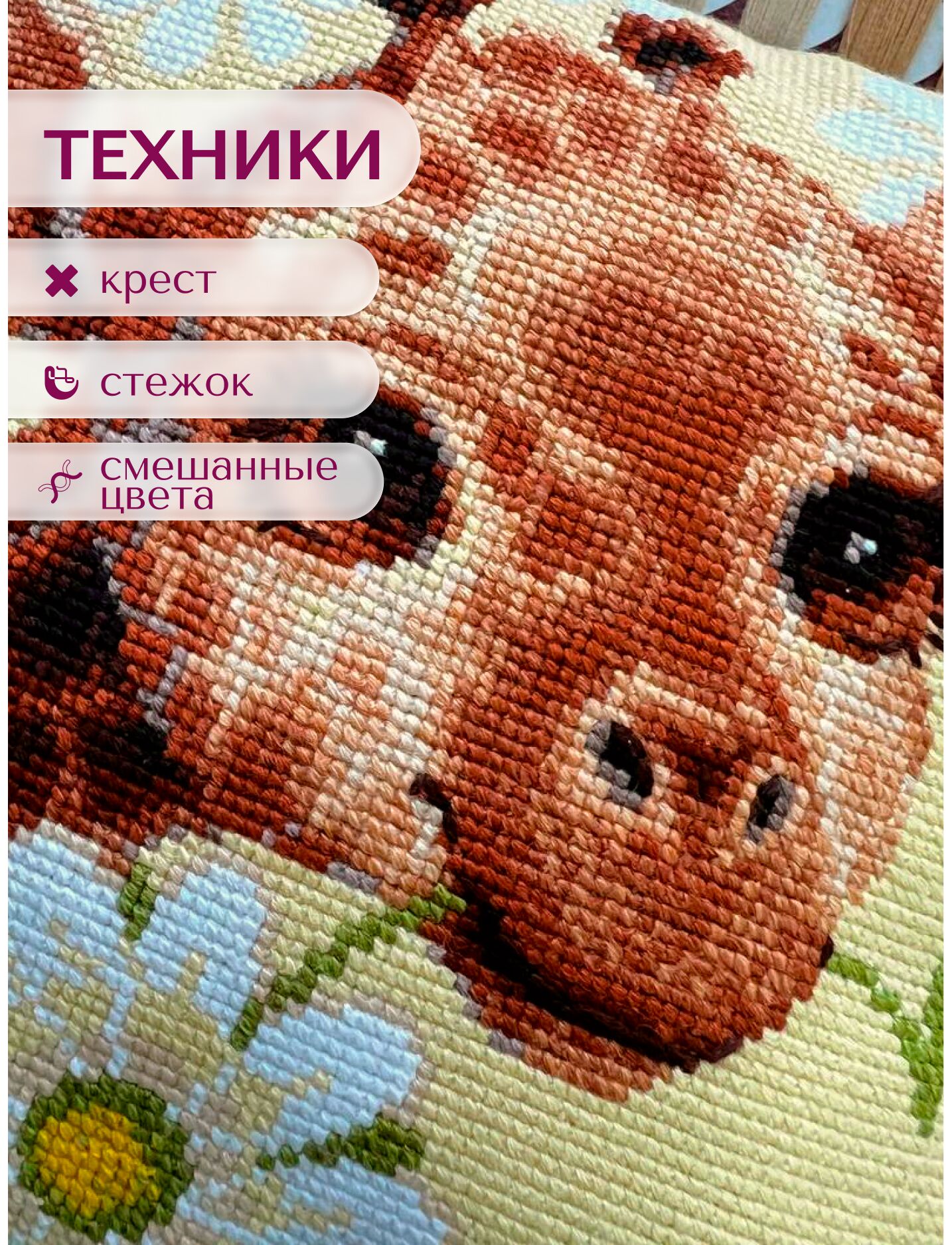 В наборе используются техники: крест, стежок, смешанные цвета.