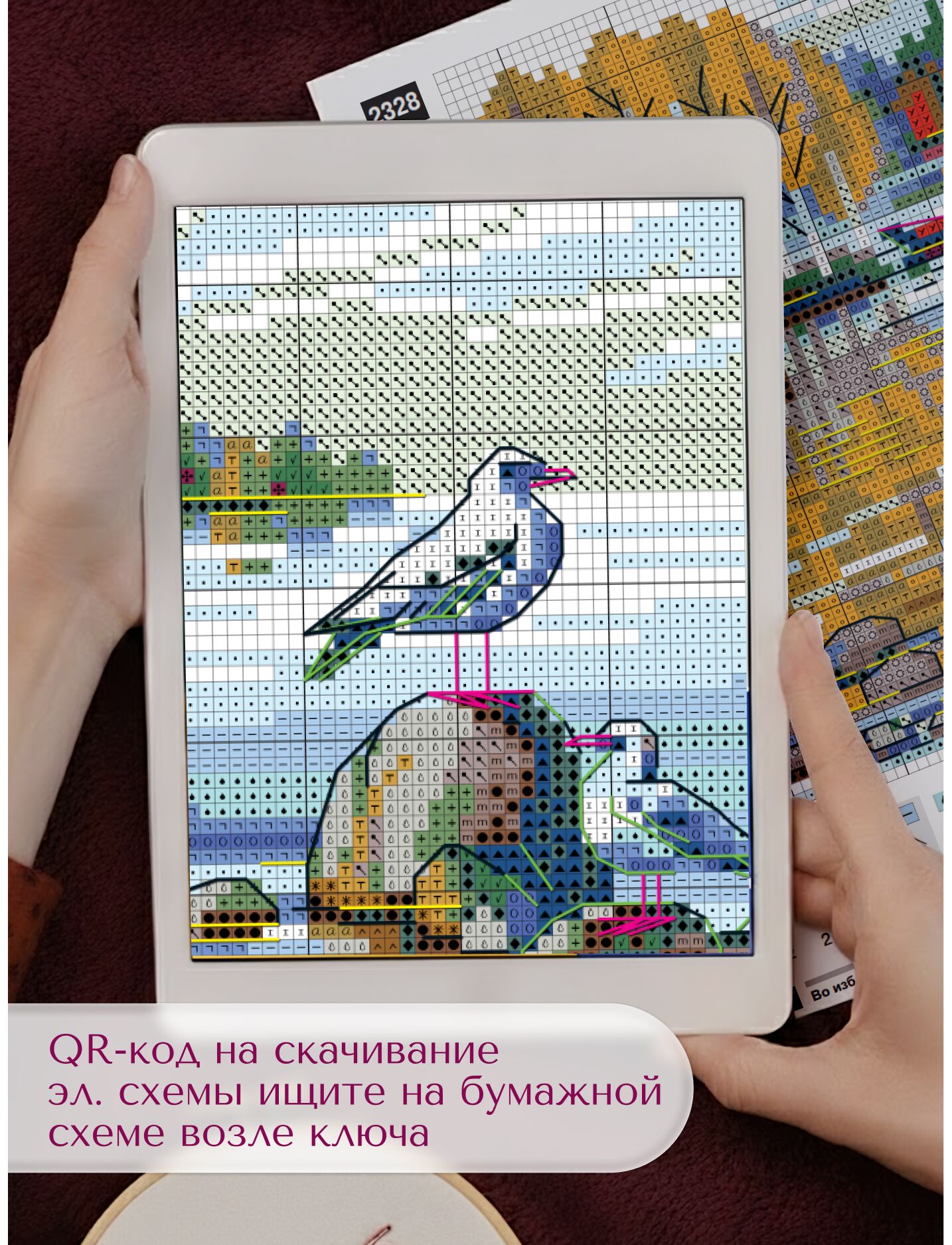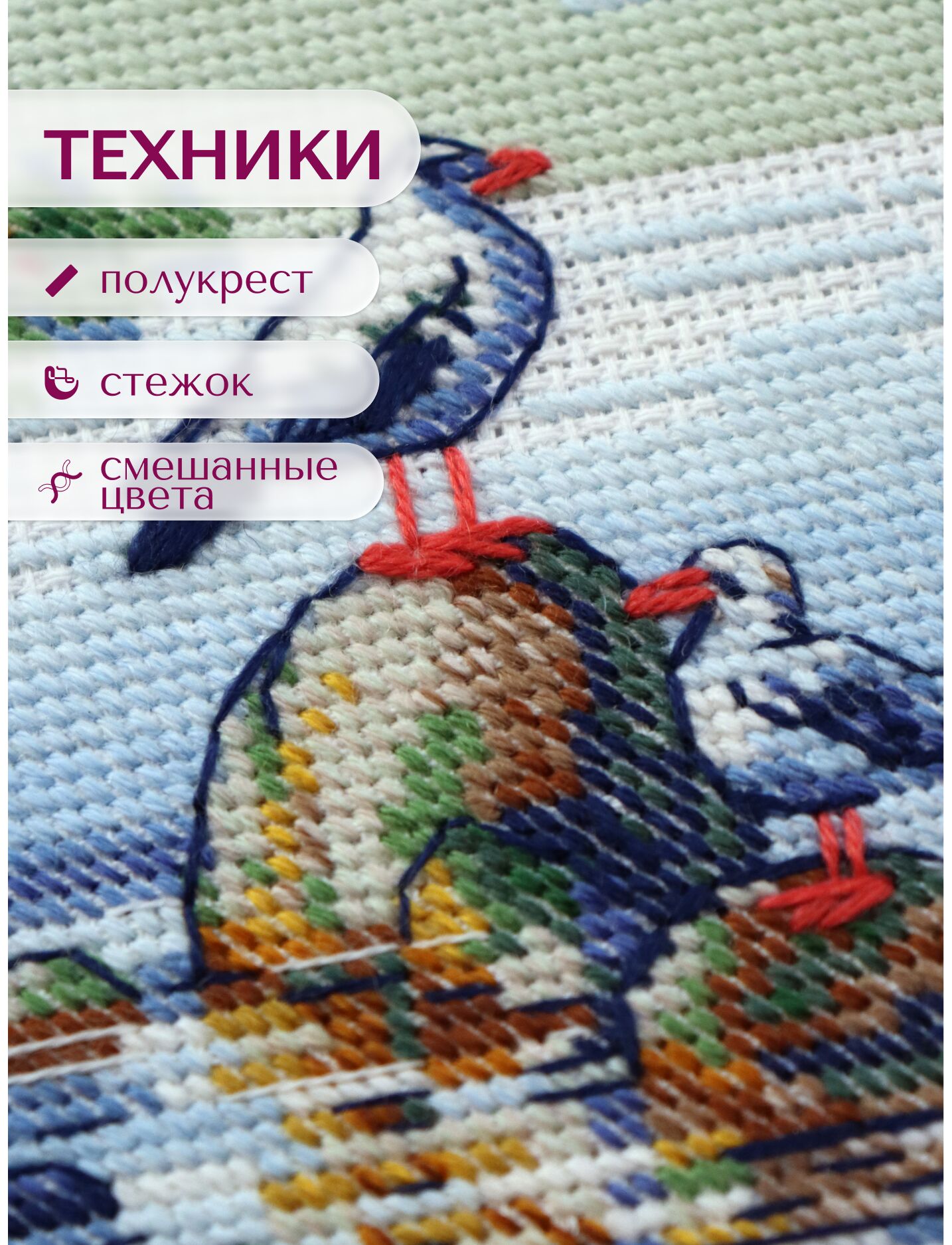 В наборе используются техники: полукрест, стежок, смешанные цвета.