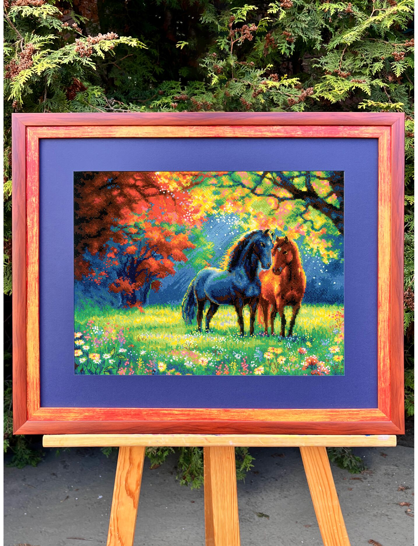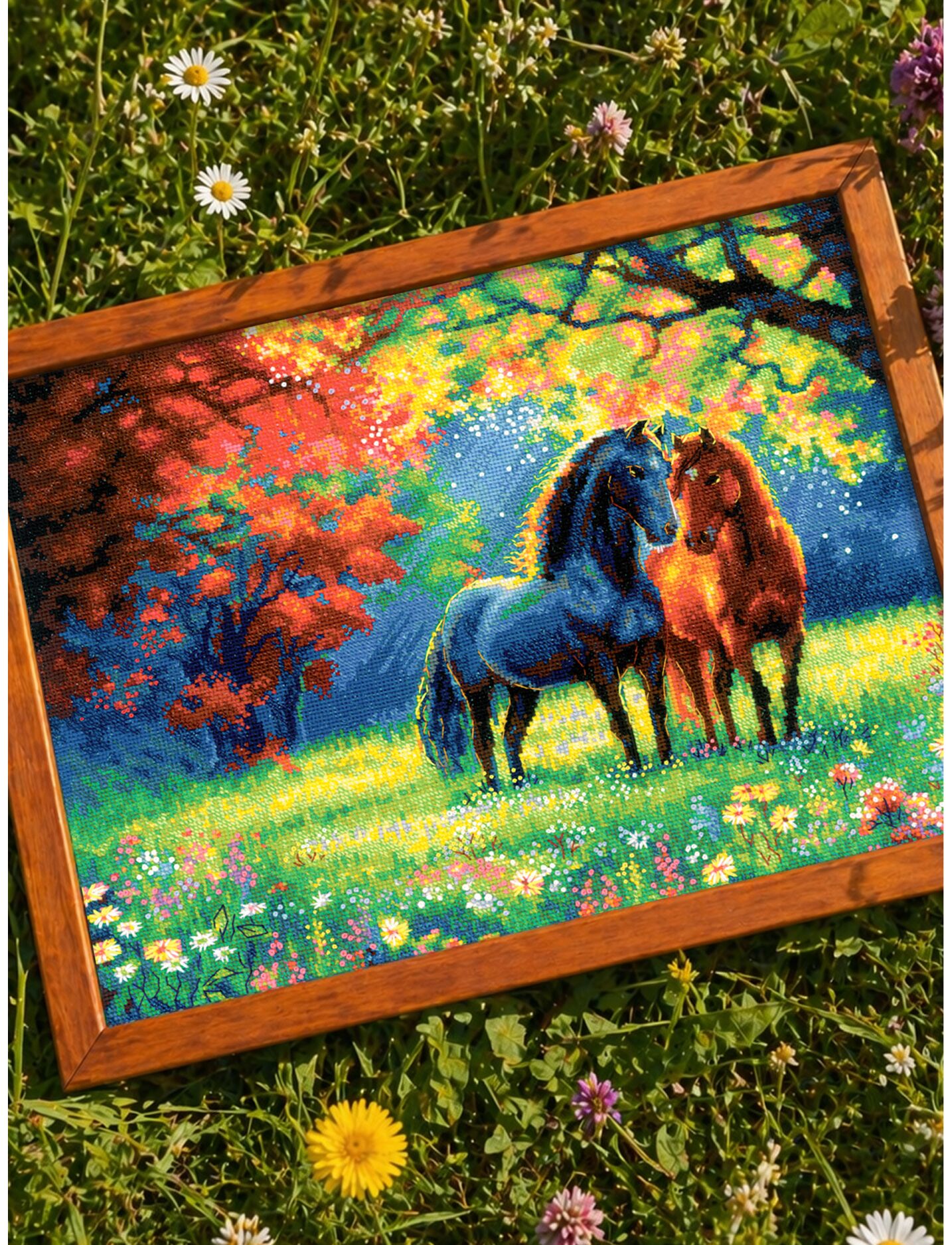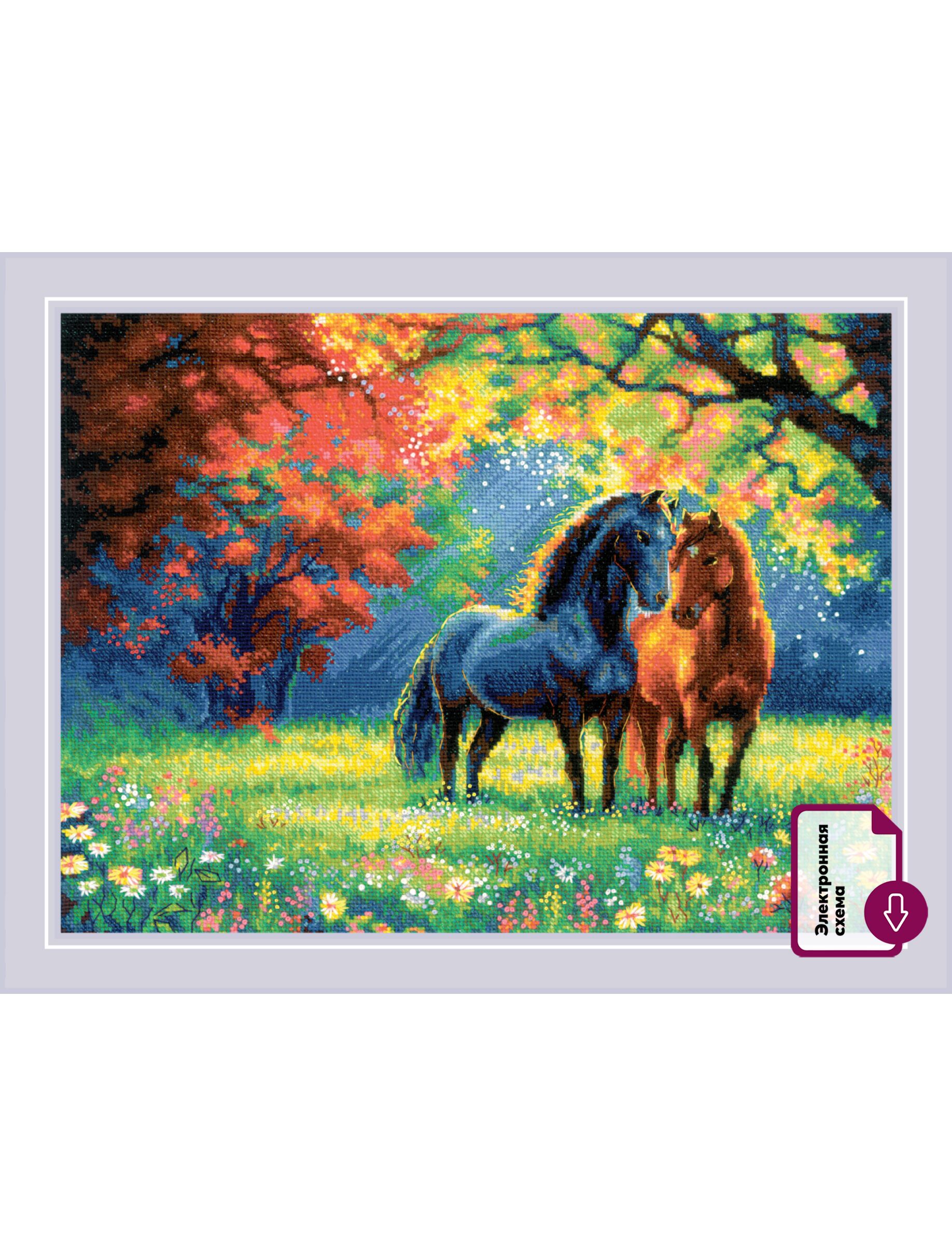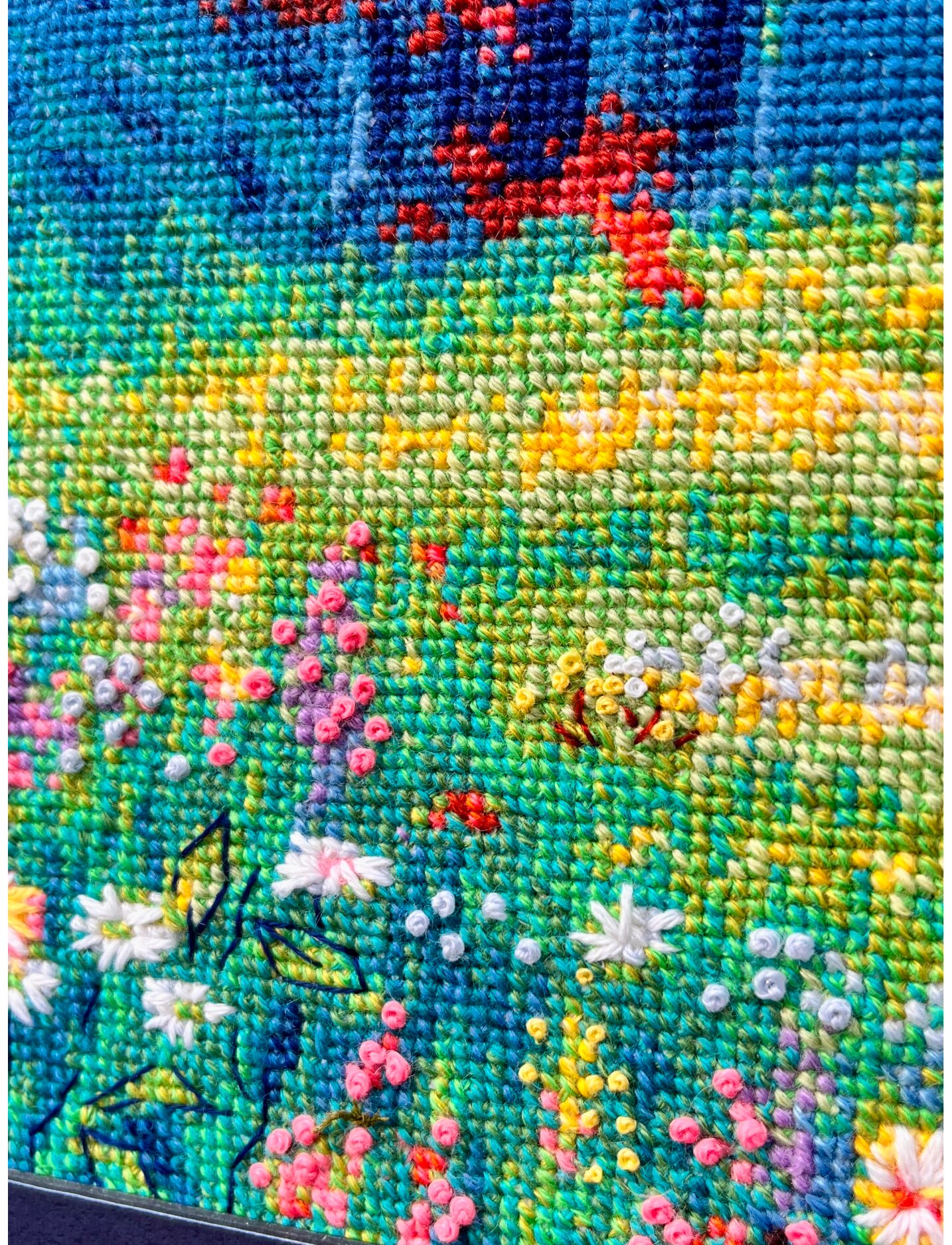 В наборе используются техники: крест, стежок, французский узелок, смешанные цвета.