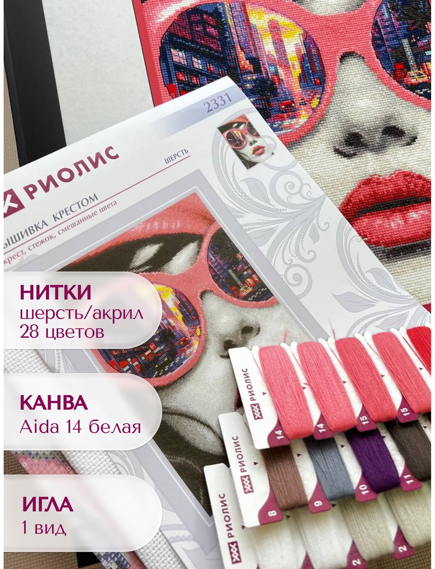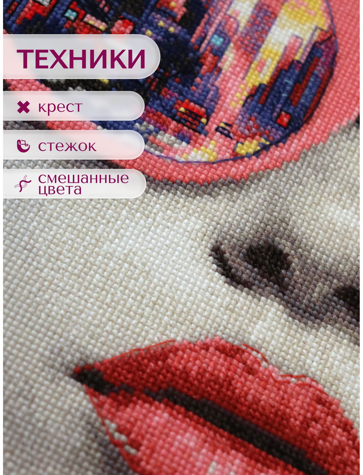 В наборе используются техники: крест, стежок, смешанные цвета.