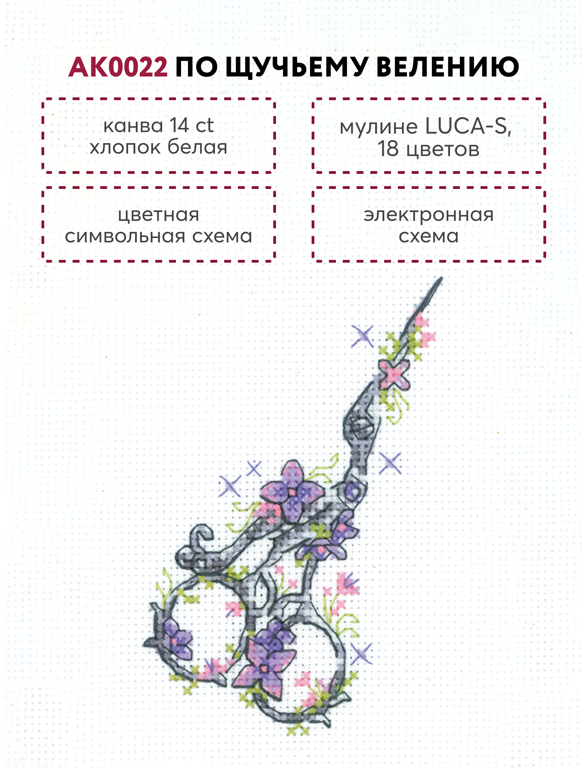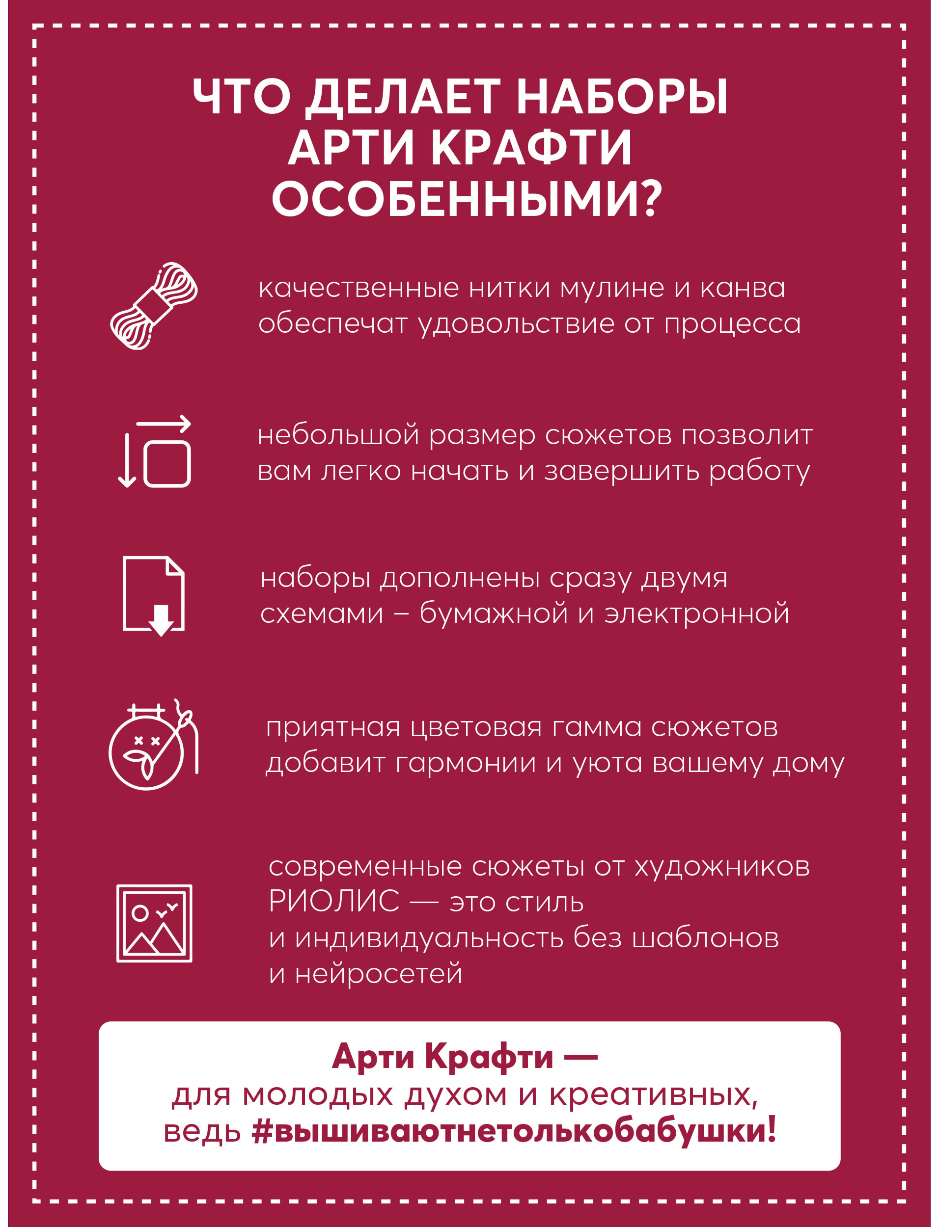 В наборе используются техники: крест, стежок, смешанные цвета.