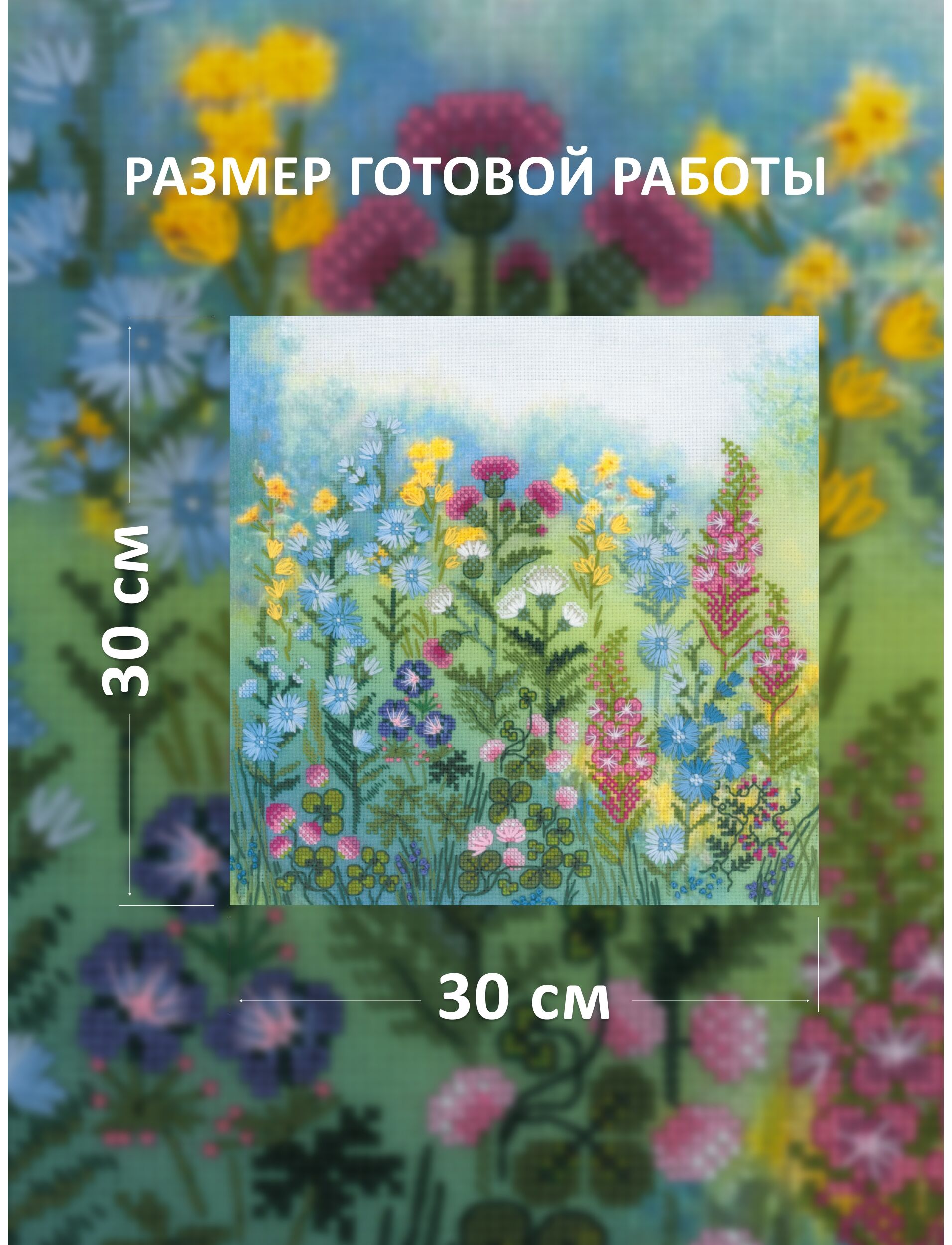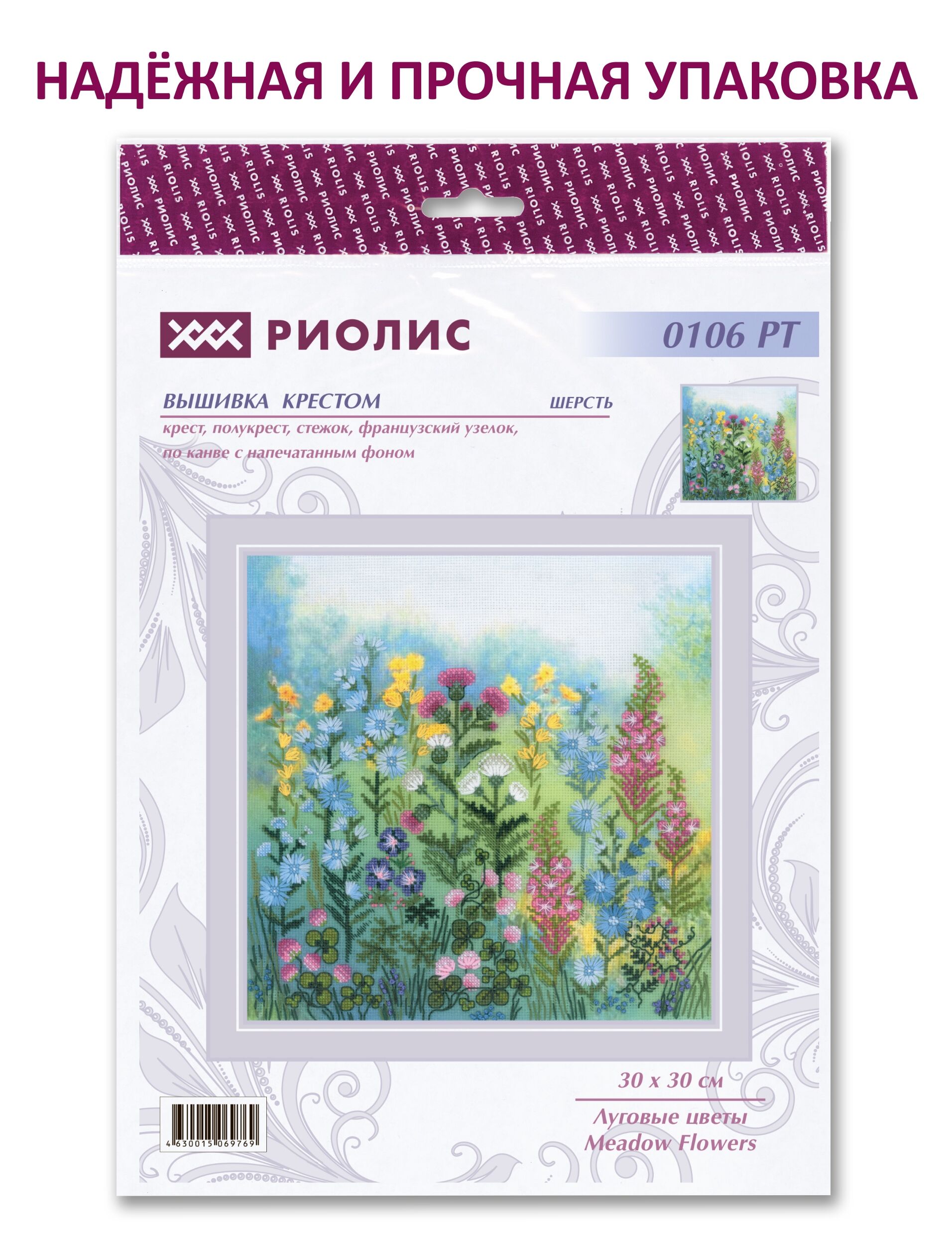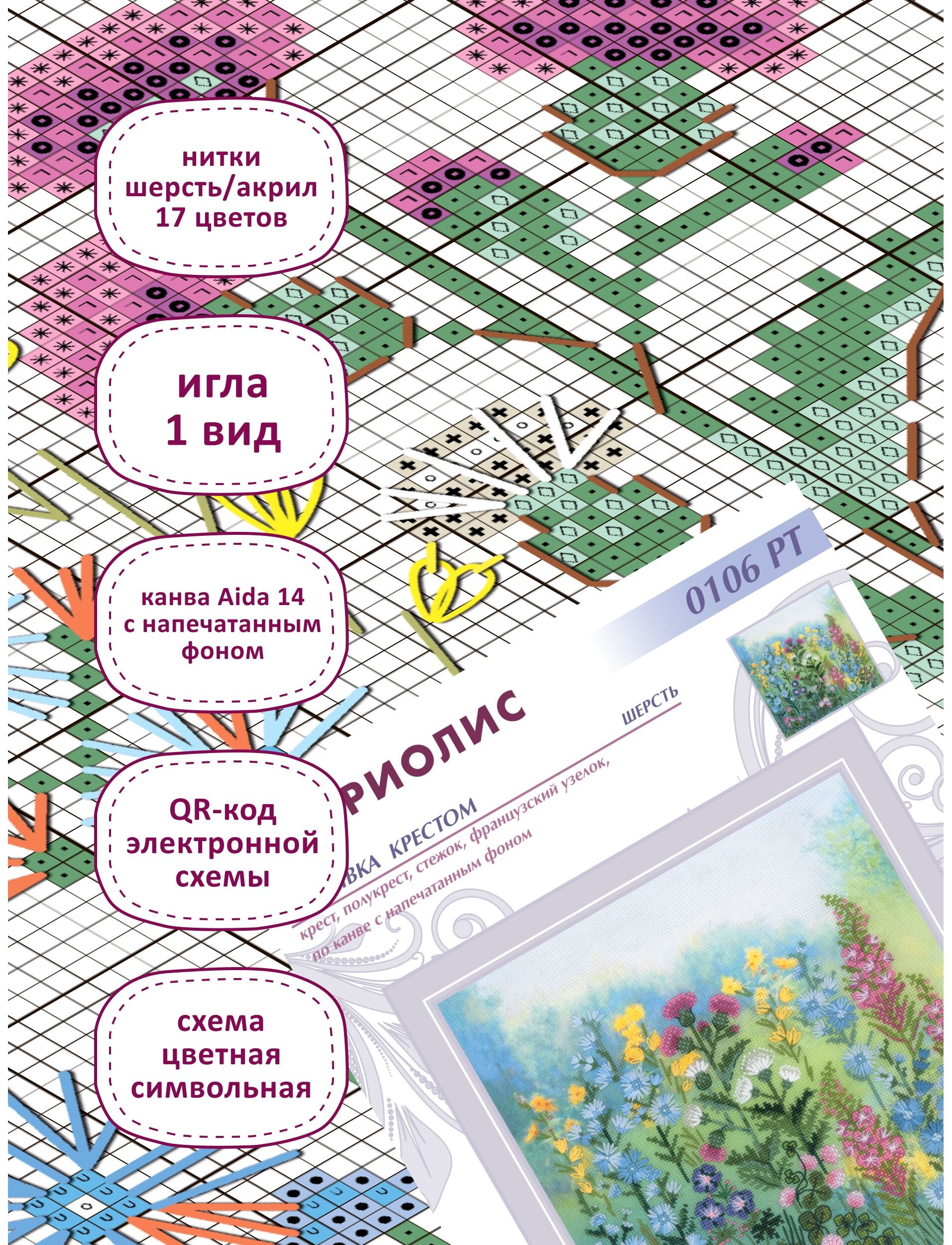 В наборе используются техники: крест, полукрест, стежок, французский узелок по канве с напечатанным фоном.