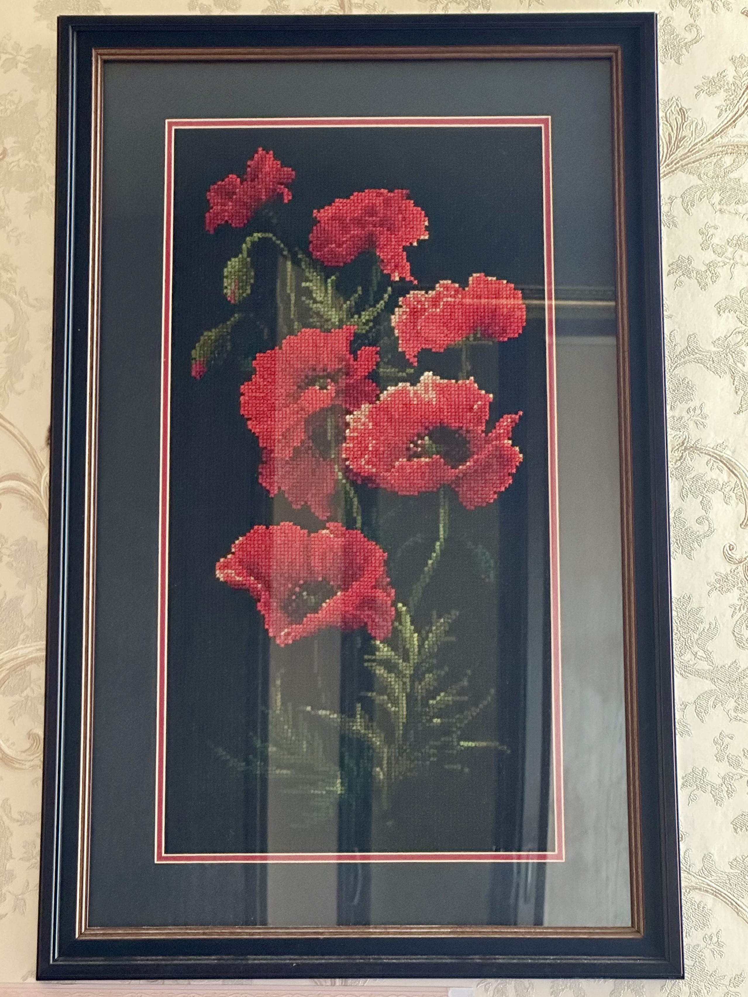 Набор для вышивки крестом выполняется на черной канве, ведь ни один другой фон не преподнесет так сочно ярко-алый, зеленый цвета и все их оттенки, как это делает черный цвет. Особо насыщенно и богато смотрятся маки! Обратите внимание: форма сюжета нетрадиционная — это вытянутая вертикально «дорожка». Создатели посчитали, что именно в таком формате готовая композиция будет смотреться наиболее эффектно и не ошиблись.