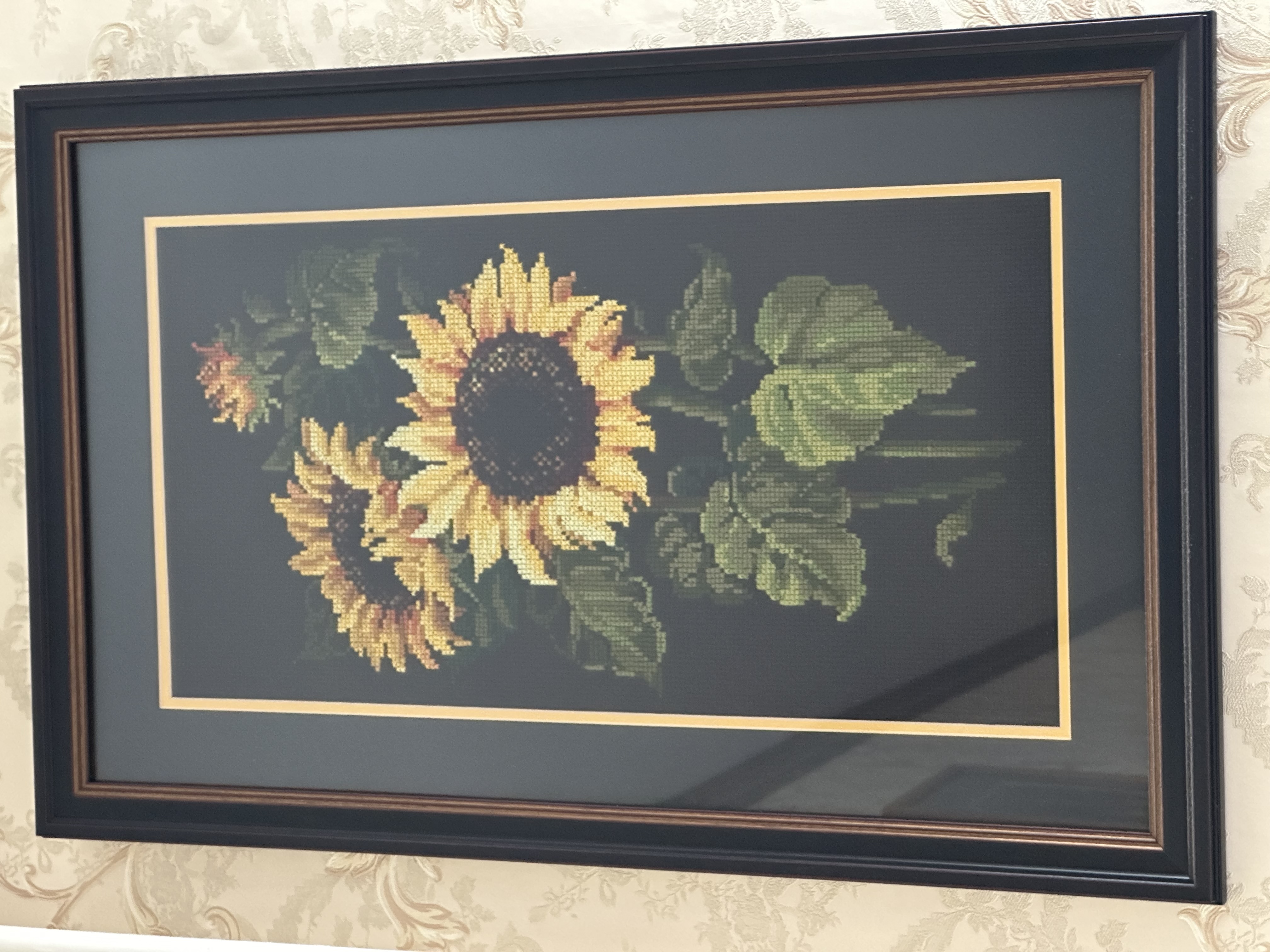 Изначально хотела повесить на кухне, но оформленная картина в багет вышла очень большой (для кухни) и в итоге данная работа ...