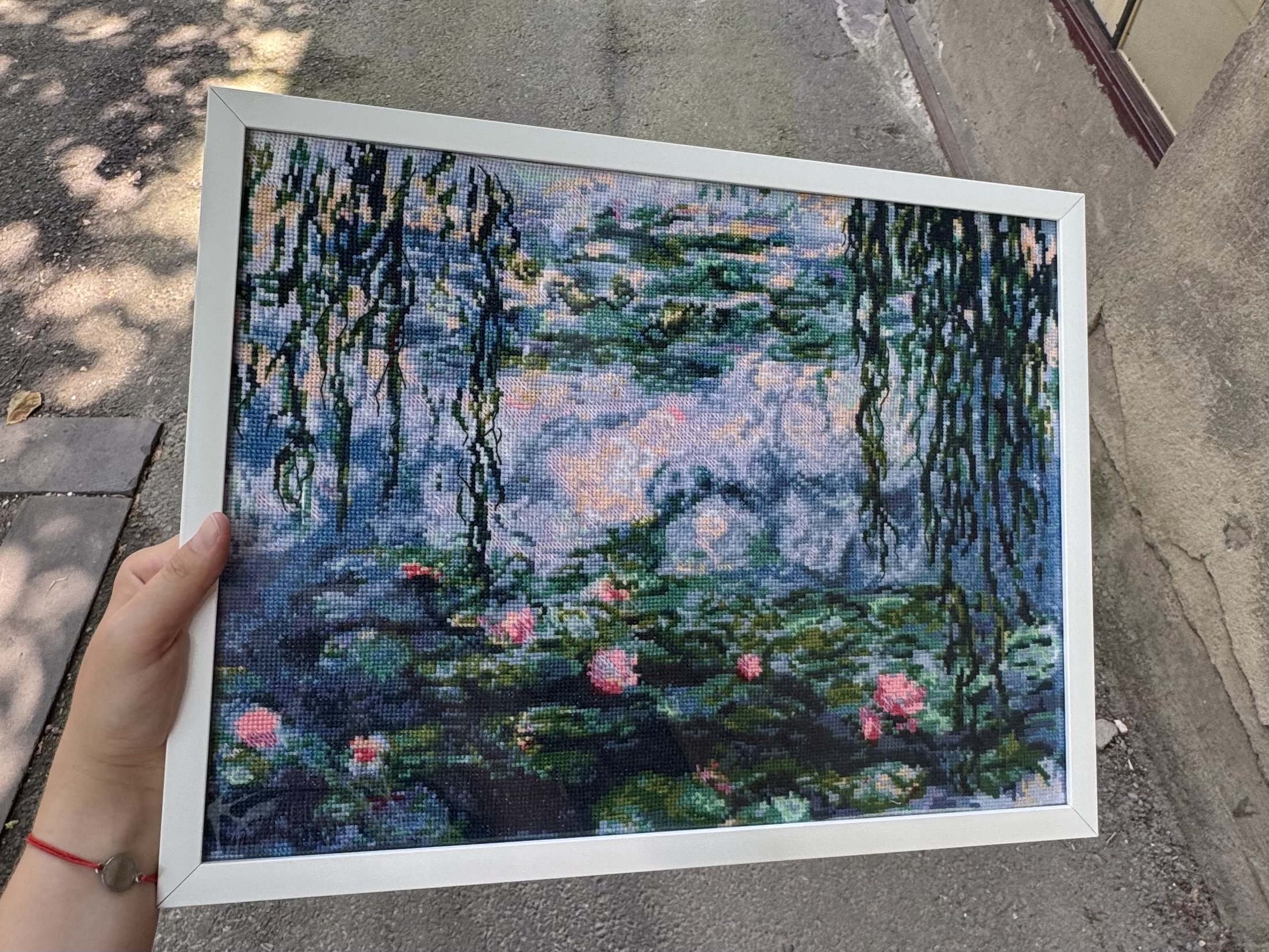 Темную зелень водорослей, оттеняющую игрушечно-розовую красоту нежных лилий.