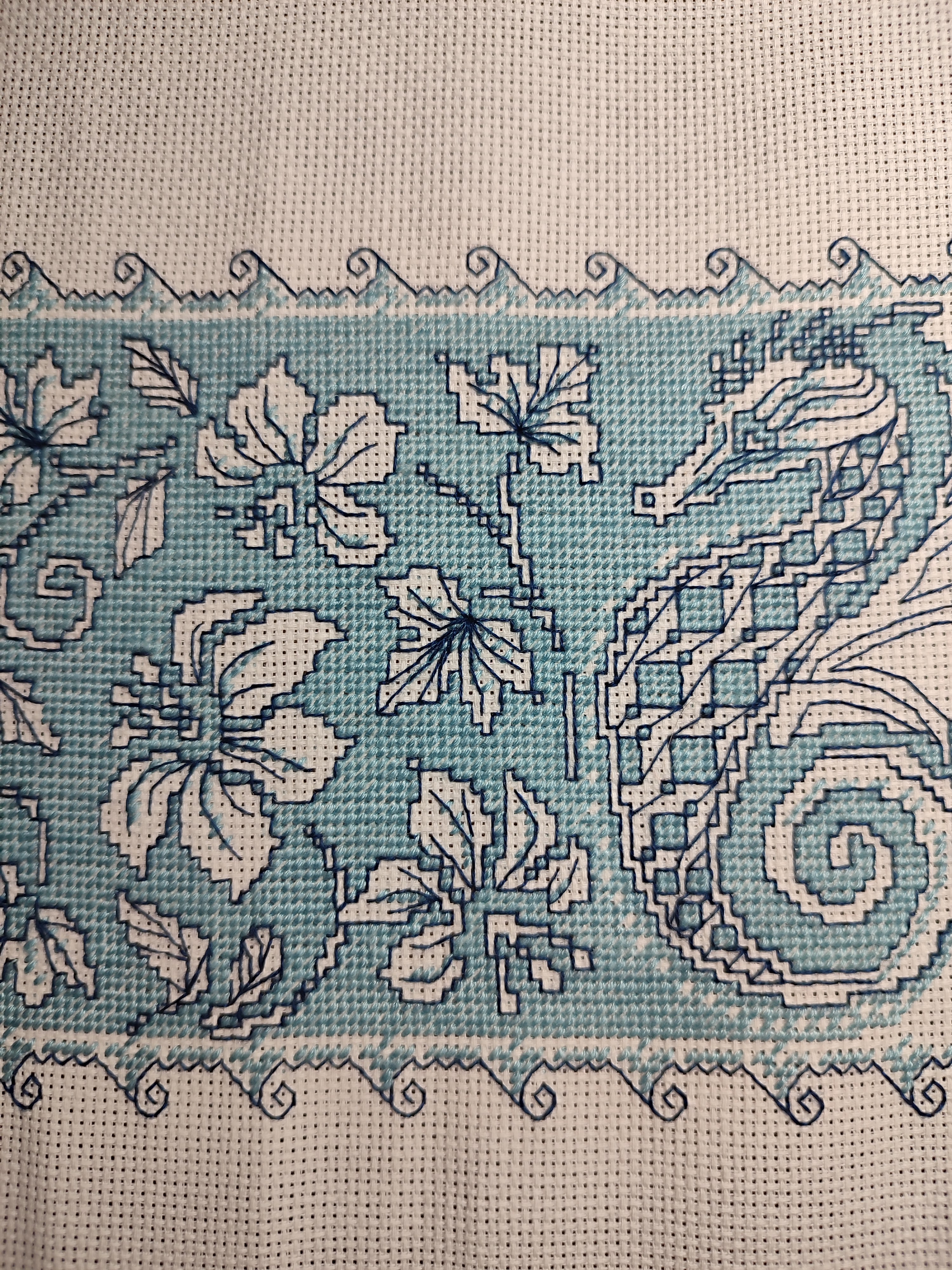 При выполнении работы используется техника Ассизи. Размер салфетки 62х32 см. Размер панно 45х16 см.